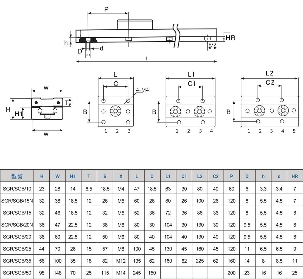 產品名稱:SGR/SGB雙軸心滾輪直線導軌